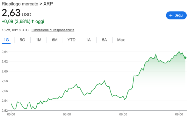 In sintesi, il quadro tecnico di XRP mostra potenzialità di recupero, ma con livelli di resistenza critici che potrebbero decidere il destino del trend nelle prossime sessioni. Una chiusura stabile sopra 2,66 dollari rappresenterebbe un segnale di forza, mentre un ritorno sotto 2,40 dollari riaprirebbe scenari ribassisti.