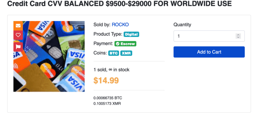 Nel dicembre 2022, circa 7,5 milioni di carte di credito sono state rese disponibili sul Dark Web. Il costo medio delle informazioni s varia da 10 dollari (in Paesi come Stati Uniti, Canada e Australia) a 240 dollari l’una.