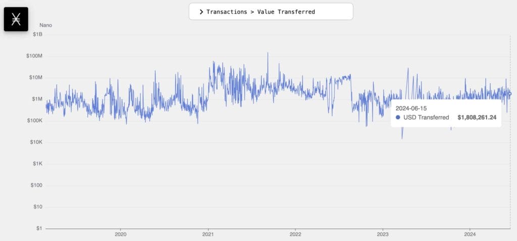 Inoltre, Nano ha un volume di transazioni sulla catena proporzionalmente elevato, ponderato per il suo valore di mercato.
