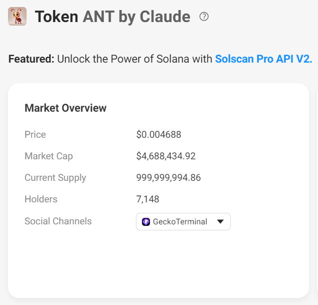 ANT ha attirato l’attenzione degli appassionati di meme coin per la sua origine particolare, considerando che è la prima moneta lanciata su Solana attraverso l’ultima funzione di AnthropicAI, che consente alla tecnologia AI generativa di utilizzare il computer come fanno le persone.