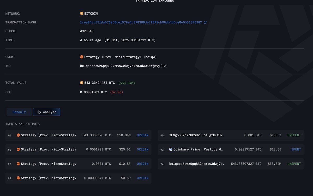 Il trasferimento arriva poche ore dopo che Strategy ha comunicato un utile netto di 2,8 miliardi di dollari nel terzo trimestre, superando le aspettative di Wall Street.
