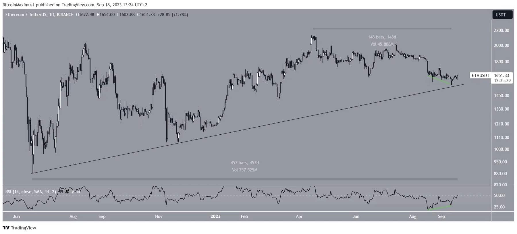 Il prezzo di Ethereum raggiunge la linea di supporto ascendente a 460 giorni