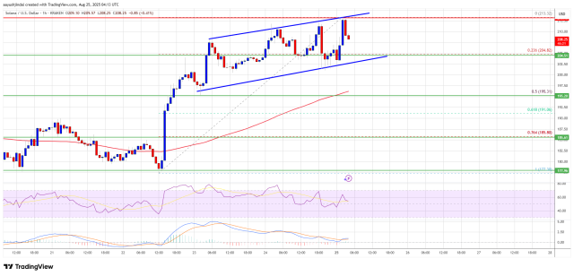 Se Solana non riuscisse a superare con decisione la resistenza chiave a 212$, il prezzo potrebbe avviare un nuovo movimento correttivo. Il primo livello di supporto al ribasso si trova vicino ai 205$, mentre un supporto più significativo è individuabile a 202$.