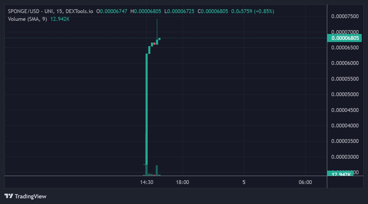 Alcuni dei più grandi influencer dello spazio Alpha hanno dato risalto a SPONGE come la prossima moneta meme da far esplodere, e nel giro di poche il volume di scambi della nuova crypto ha raggiunto l’impressionante cifra di 1,03 milioni di dollari.
