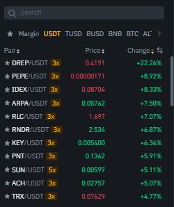 Iniziamo subito da due performance degne di nota: Tornado Cash (TORN) e Pepe, con quest’ultima che si è assicurata la seconda posizione di maggior guadagno sulle coppie USDT di Binance.