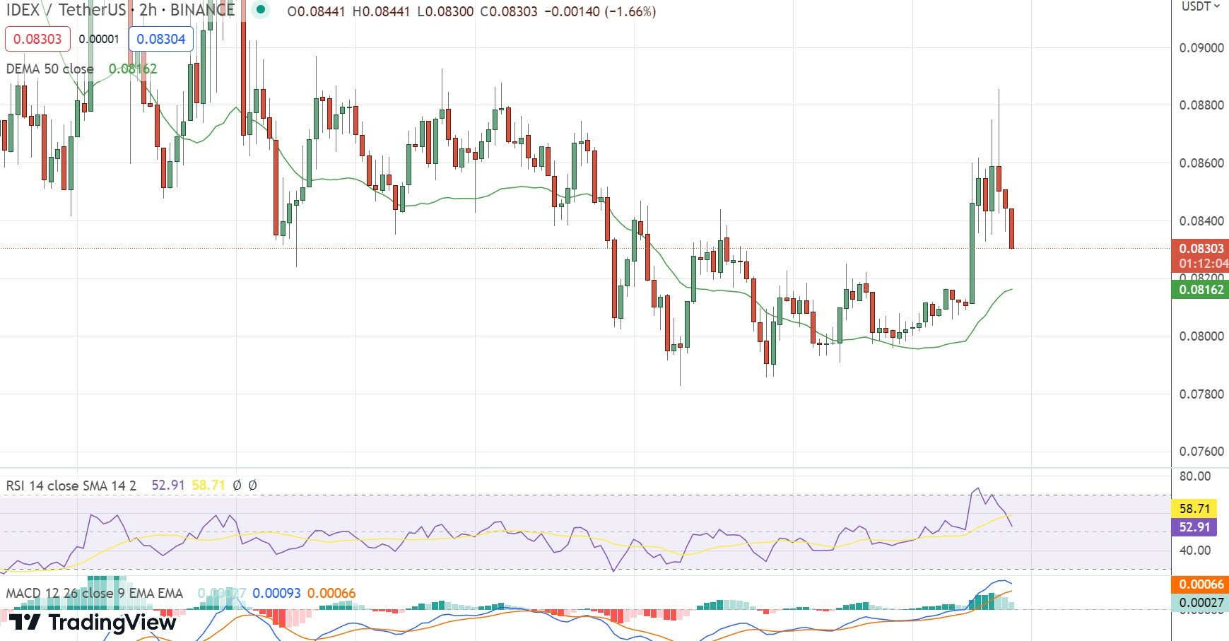 IDEX è un exchange decentralizzato che fornisce agli utenti una piattaforma sicura ed efficiente per la negoziazione di varie criptovalute. Il suo token nativo, IDEX, è attualmente scambiato al prezzo di 0,08139 dollari e il suo volume di scambi nelle ultime 24 ore è di 48.862.954 dollari.