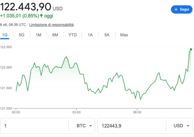 Attualmente, il prezzo del Bitcoin si aggira intorno ai 122.000 dollari, con un incremento di quasi il 7% nell’ultima settimana e del 10% nell’ultimo mese. Secondo le simulazioni citate, BTC dovrebbe salire di circa il 15% per raggiungere i 140.000 dollari.