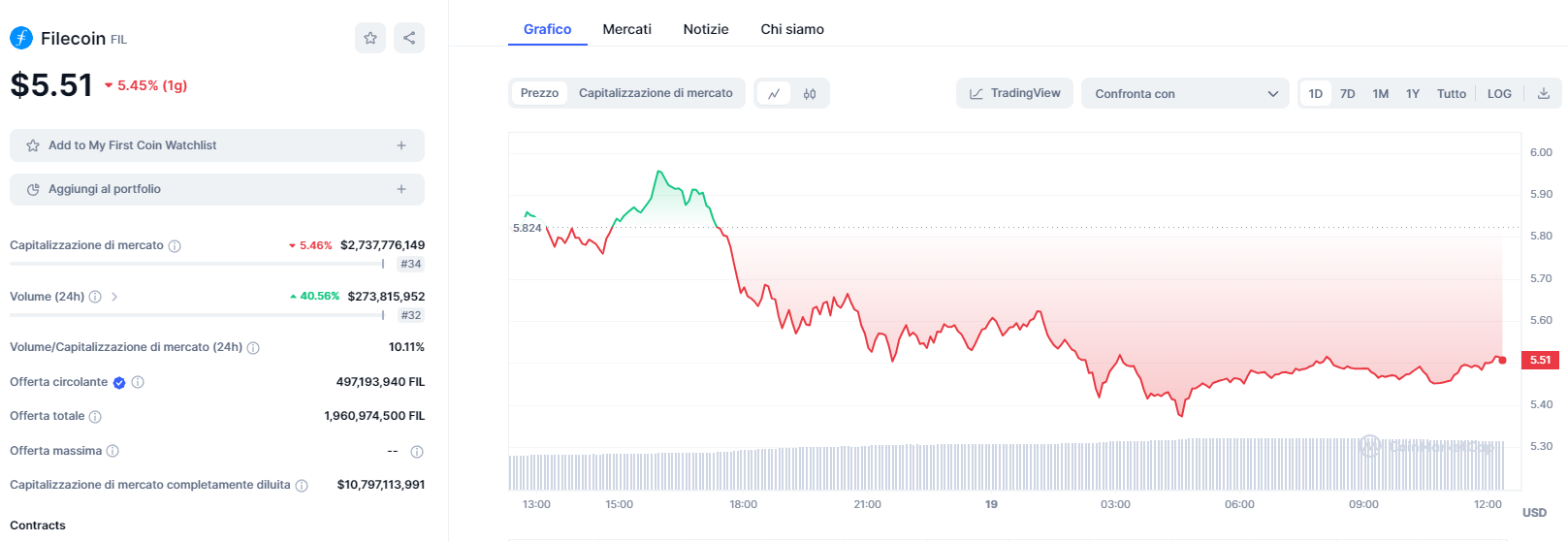 Se guardiamo i dati fondamentali di Filecoin, attualmente il suo market cap è molto alto, con una capitalizzazione di mercato diluita pari a 10,7 milioni e ha solo il 22% circa di circolante, questo potrebbe portare a una forte pressione di vendita nella prossima bull run.