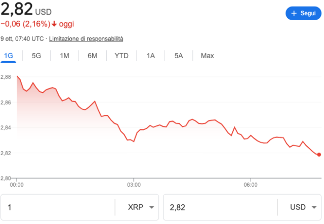 Il prezzo di XRP oggi si attesta intorno ai 2,82 dollari, mantenendo una posizione stabile nonostante la turbolenza che sta colpendo l’intero mercato delle criptovalute. I trader restano cauti ma curiosi, in attenta osservazione di come le prossime decisioni normative e le potenziali approvazioni degli ETF su XRP potrebbero determinare la prossima grande mossa del token.