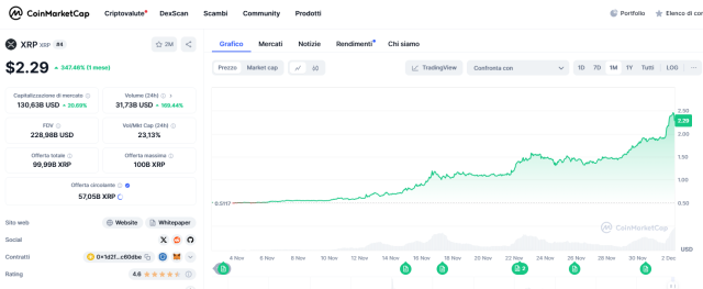 Continua senza sosta il successo di XRP, la criptovaluta che in questi giorni sta macinando record, segnando un +347% nell’ultimo mese. Solo oggi guadagna quasi il +25%, mentre negli ultimi sette giorni ha registrato un incredibile +55%.