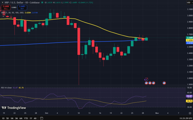L’andamento dei prezzi di XRP risulta interessante, soprattutto dopo il brusco calo del 10 ottobre. Serve comunque una rottura decisa al di sopra dei 2,63 dollari per confermare la prosecuzione del trend positivo. Da quel punto, non è escluso che la tendenza possa invertirsi e portare a un ribasso.