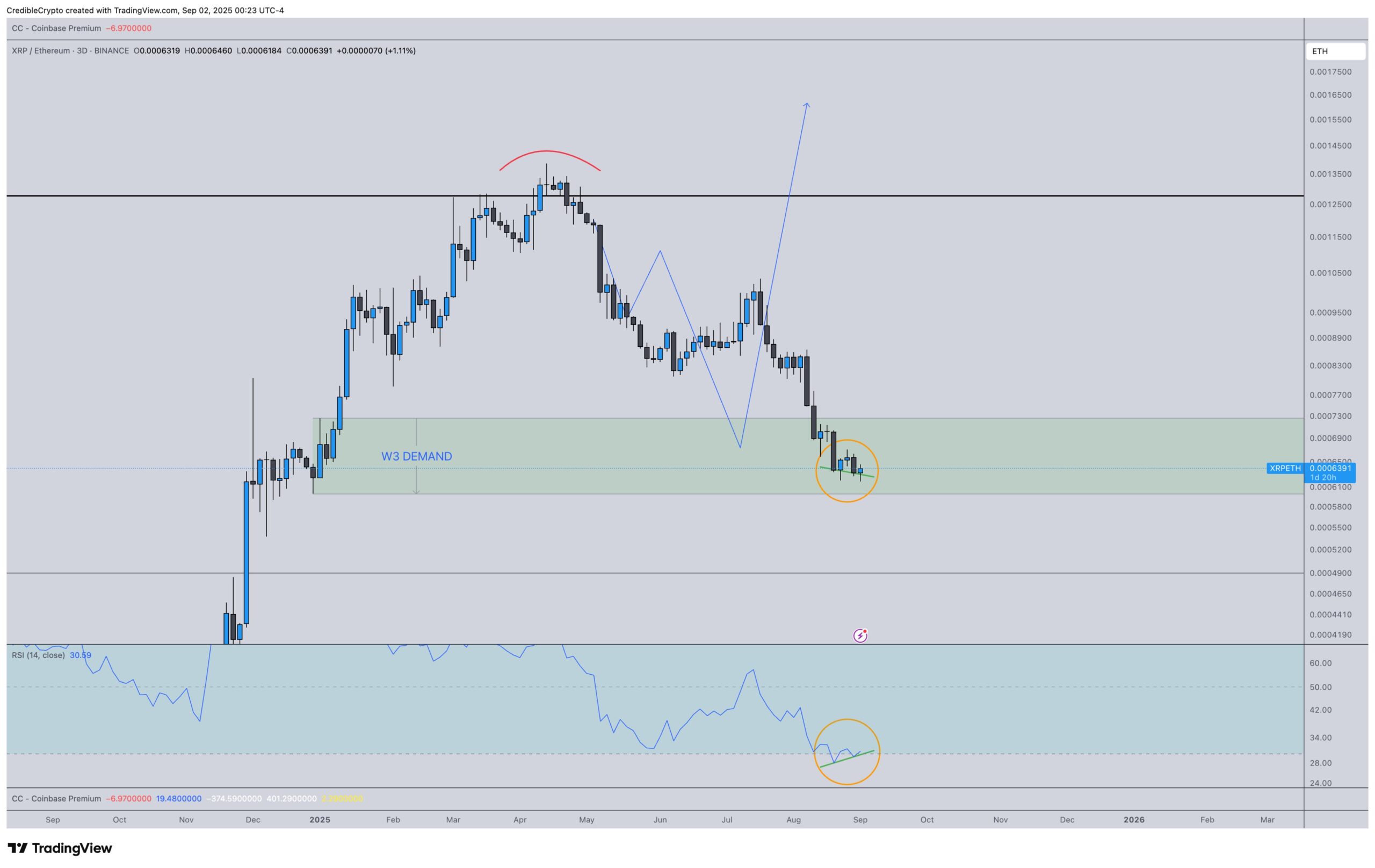 “Abbiamo già confermato divergenze bullish giornaliere su XRP/ETH, e ne stiamo osservando una anche sul timeframe D3”, ha commentato l’analista.