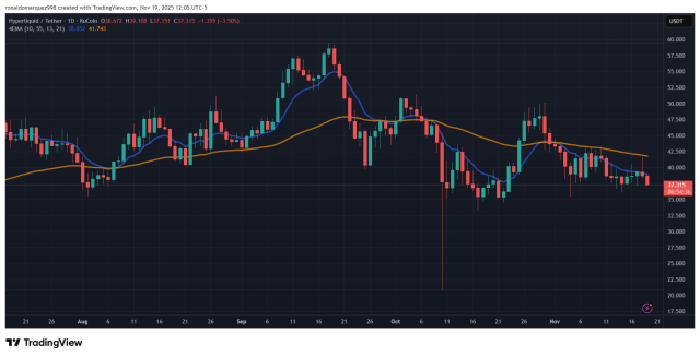Al momento, HYPE viene scambiato a 37,31 dollari, con una perdita di oltre il 9% nelle ultime due settimane. Dopo aver raggiunto il record di 59,30 dollari all’inizio dell’anno, il token ha registrato un calo di quasi il 37%, seguendo l’andamento generale del mercato crypto.