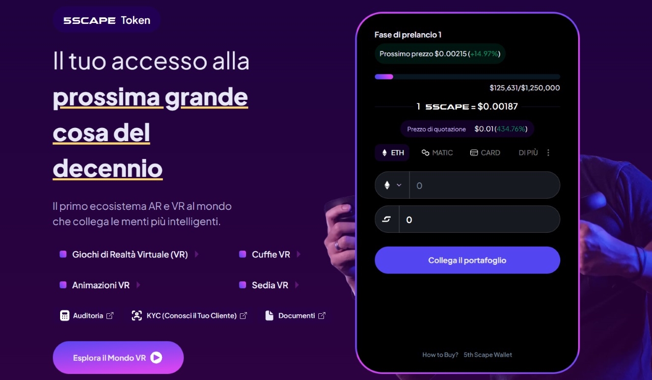 Spostando l’attenzione sulla prevendita in corso possiamo constatare come il token 5SCAPE, criptovaluta nativa, del progetto mostri caratteristiche promettenti, indicative di un’iniziativa di successo.