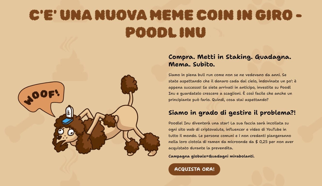 Il team di sviluppatori ha disegnato la memecoin POODL affinché emanasse un atteggiamento “IDGAF” – acronimo della frase inglese “I don’t give a f**k” (non me ne frega niente) – ed enfatizzasse il “bell’aspetto” del token, paragonandolo a “un’onda anomala su quattro zampe”.