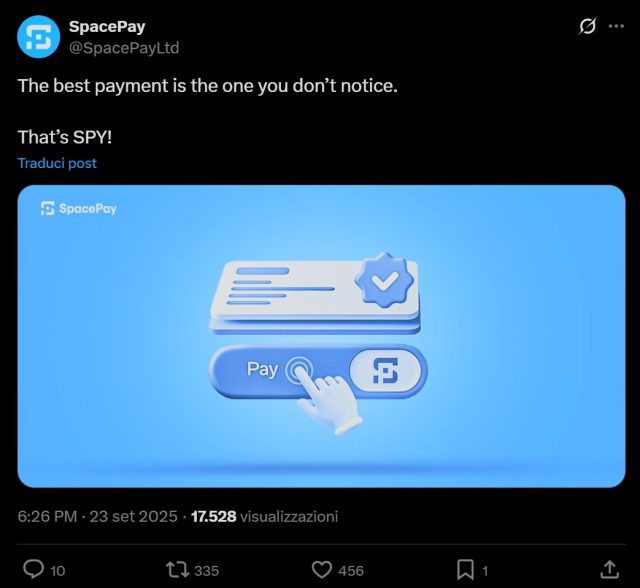 Per ulteriori aggiornamenti dalla community basta seguire i canali social di SpacePay su X (Twitter) e Telegram