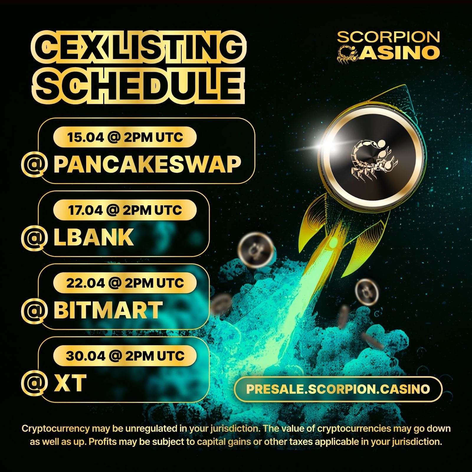 Successivamente, il 22 aprile, $SCORP sarà quotato su Bitmart, un altro exchange di primo piano, e infine sarà quotato su XT il 30 aprile.