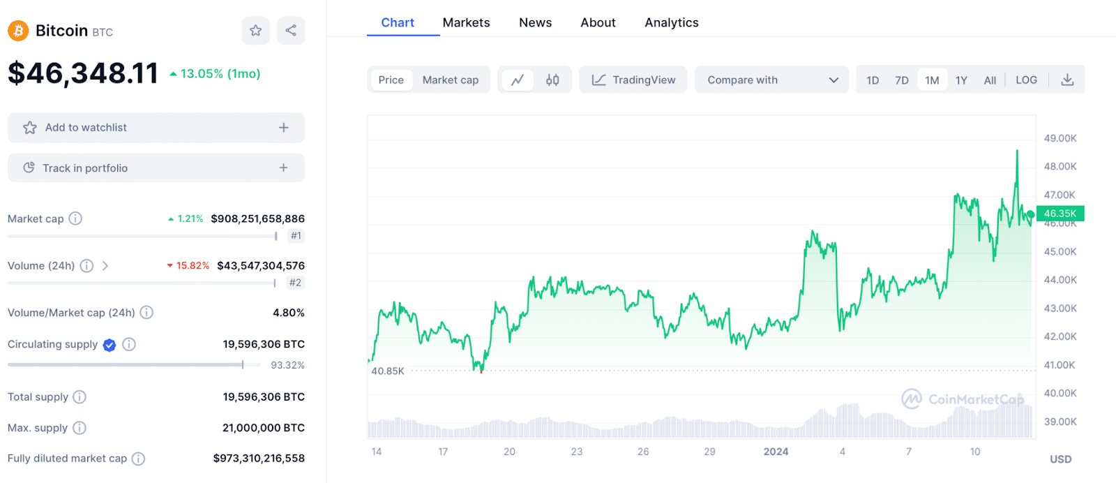 L’ottimismo legato all’approvazione dell’ETF su Bitcoin ha contribuito in modo significativo a pompare il prezzo di BTC nelle settimane precedenti l’approvazione. Malgrado l’attuale ritracciamento, il prezzo ha ripreso un andamento crescente tornando sopra il livello dei 42.000$.