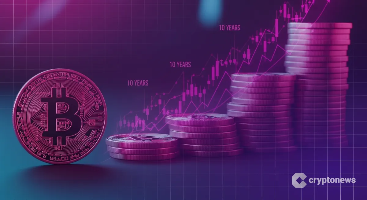 このビットコインチャートは10年間で驚異的な価格上昇を遂げた歴史を示しています。