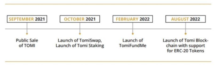 10月はTOMIにとって忙しい月となるでしょう。TOMISwapの開始はロードマップのほんの一面に過ぎません。また、TOMIトークンを保有するユーザーに新たなインセンティブを与えるTOMI stakingの導入も予定されています。TomiFundMeは2022年第1四半期にリリースされ、続いてTomiのネイティブブロックチェーンが2022年第3四半期にリリースされる予定です。