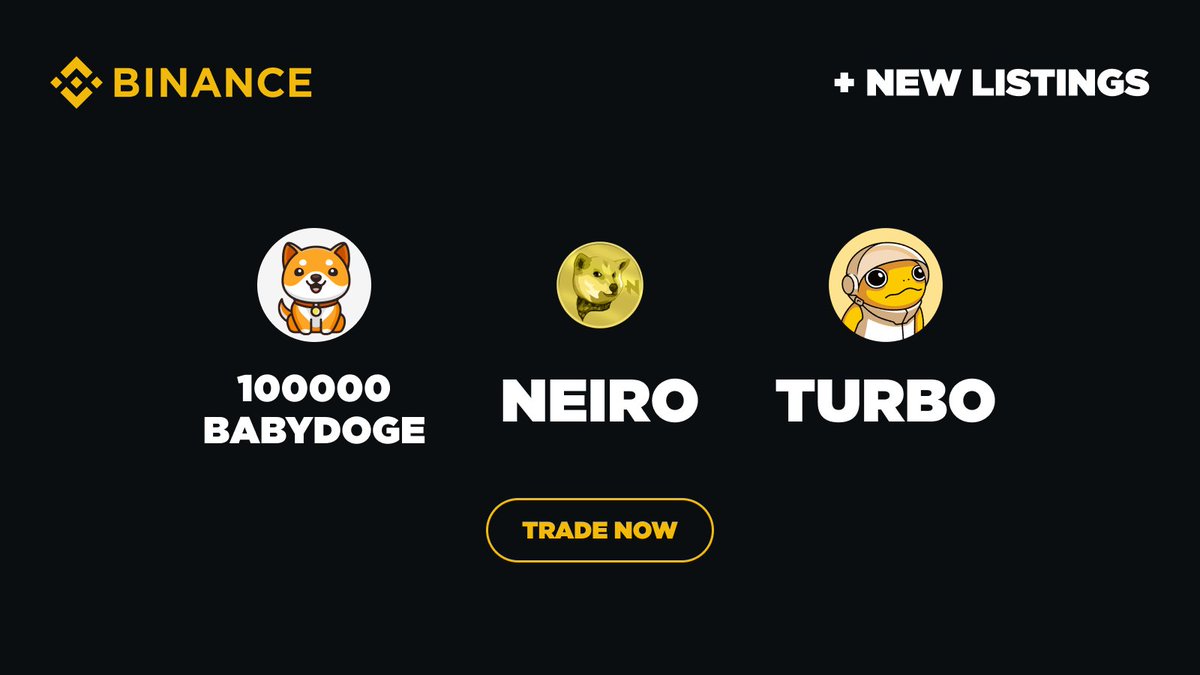 世界大手の暗号資産(仮想通貨)取引所のバイナンスは16日、NEIRO、1MBABYDOGE、TURBOのミームコイン3つを上場させた。