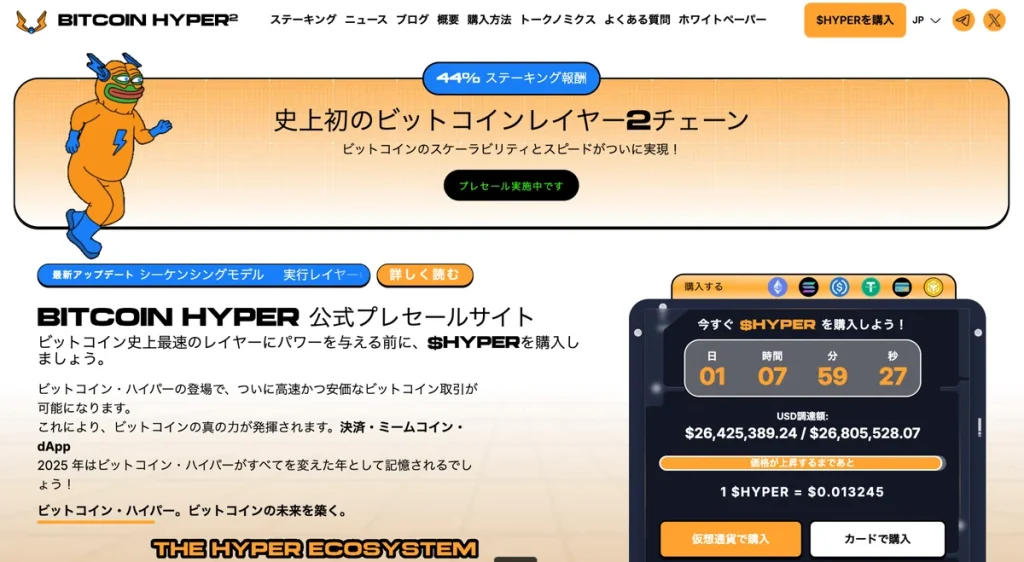 特に注目されているのが、ビットコインの潜在能力を解放することを目指すレイヤー2ソリューションBitcoin Hyper(HYPER)だ。