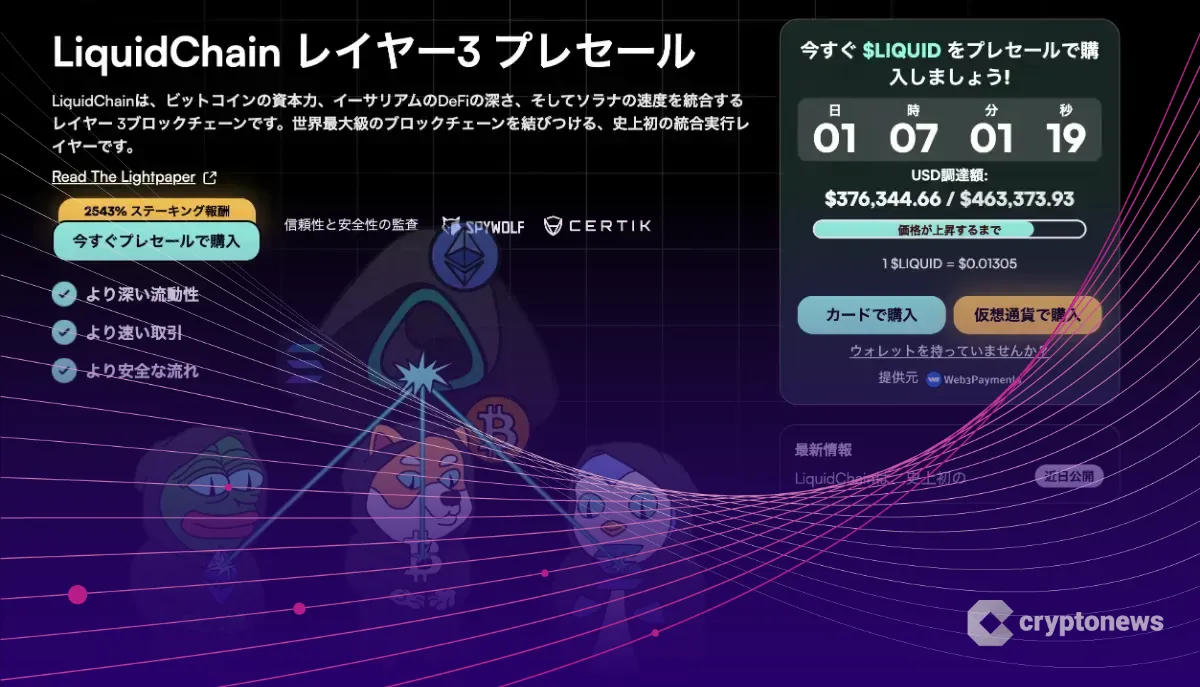 先行販売残り1日|LiquidChainが27万ドル調達、レイヤー3で浮上