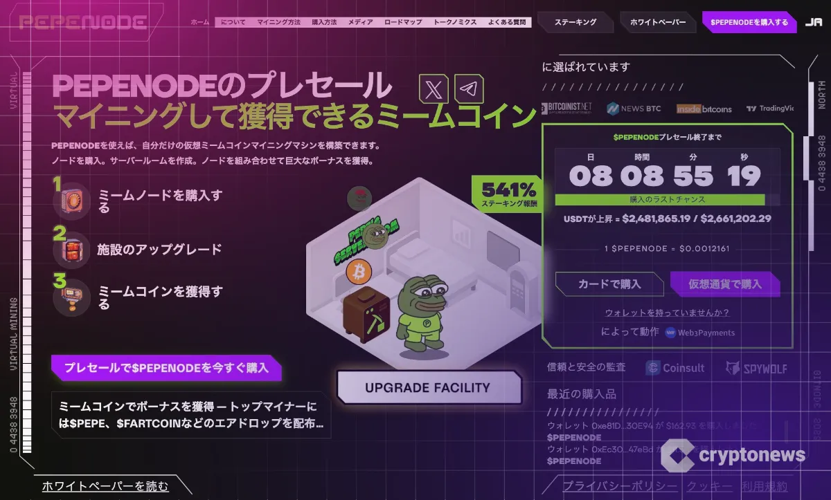 PepeNodeはこれまでに約248万ドル、日本円で約3億8300万円の資金を調達しており、着実に注目を集めています。