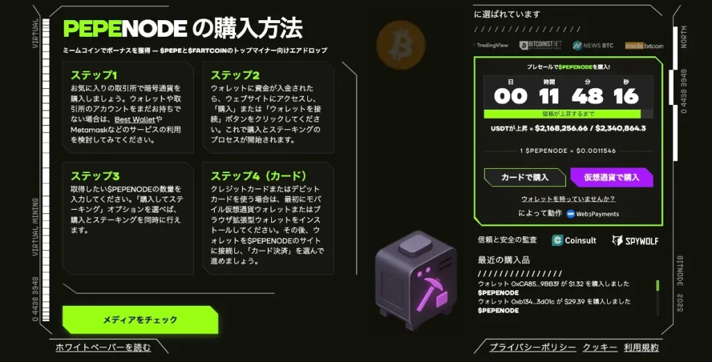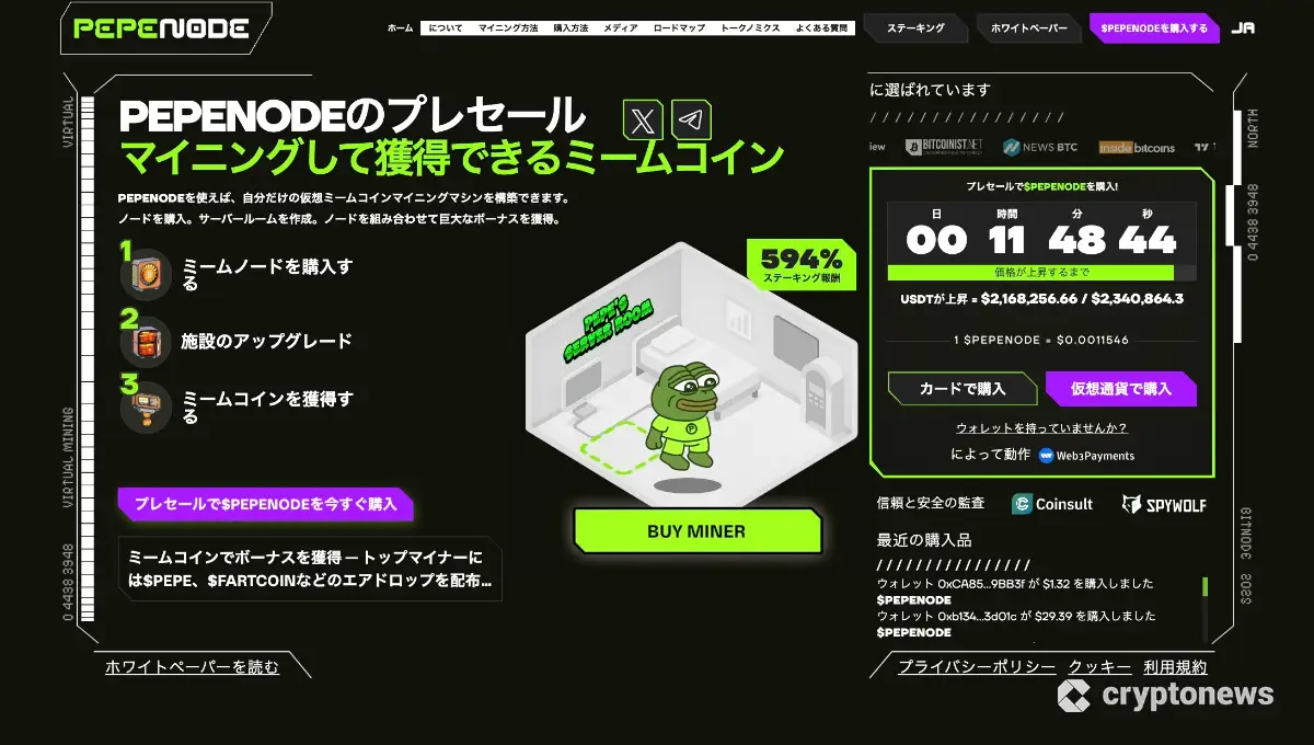 現在PepeNodeはプレセールを実施中で、PEPENODEトークンを早期に取得できる機会を提供しています。