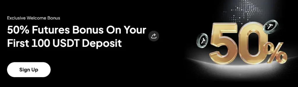 最低入金額は100USDTからとなっており、例えば100USDTを入金すると追加で50USDTがボーナスとして受け取れます。