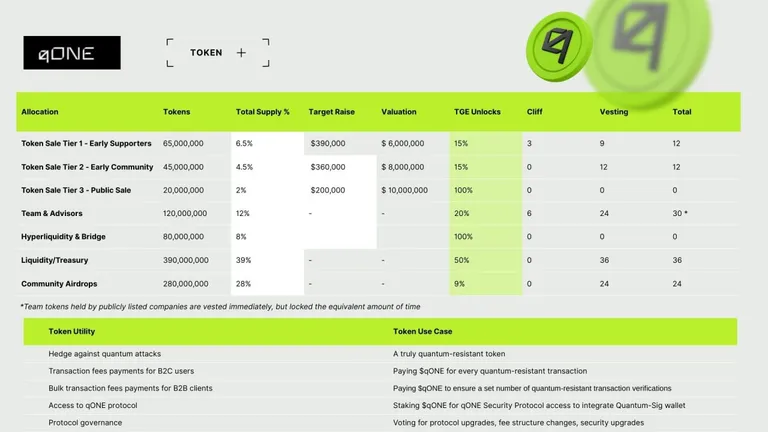 投資家は、量子攻撃に対するヘッジと、qONEセキュリティプロトコル全体の燃料として機能するトークンを入手できます。多くのアルトコイン(ビットコイン以外の仮想通貨)は投機的ですが、qONEは保険としての役割を果たします。