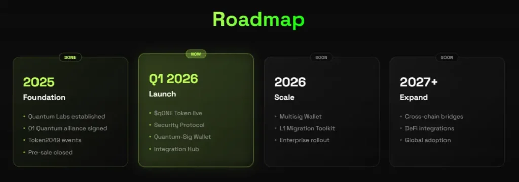 他のプロジェクトが将来の解決策を約束する一方で、qONEは即座に機能を提供します。このプレセールは耐量子保護への即時アクセスを可能にします。