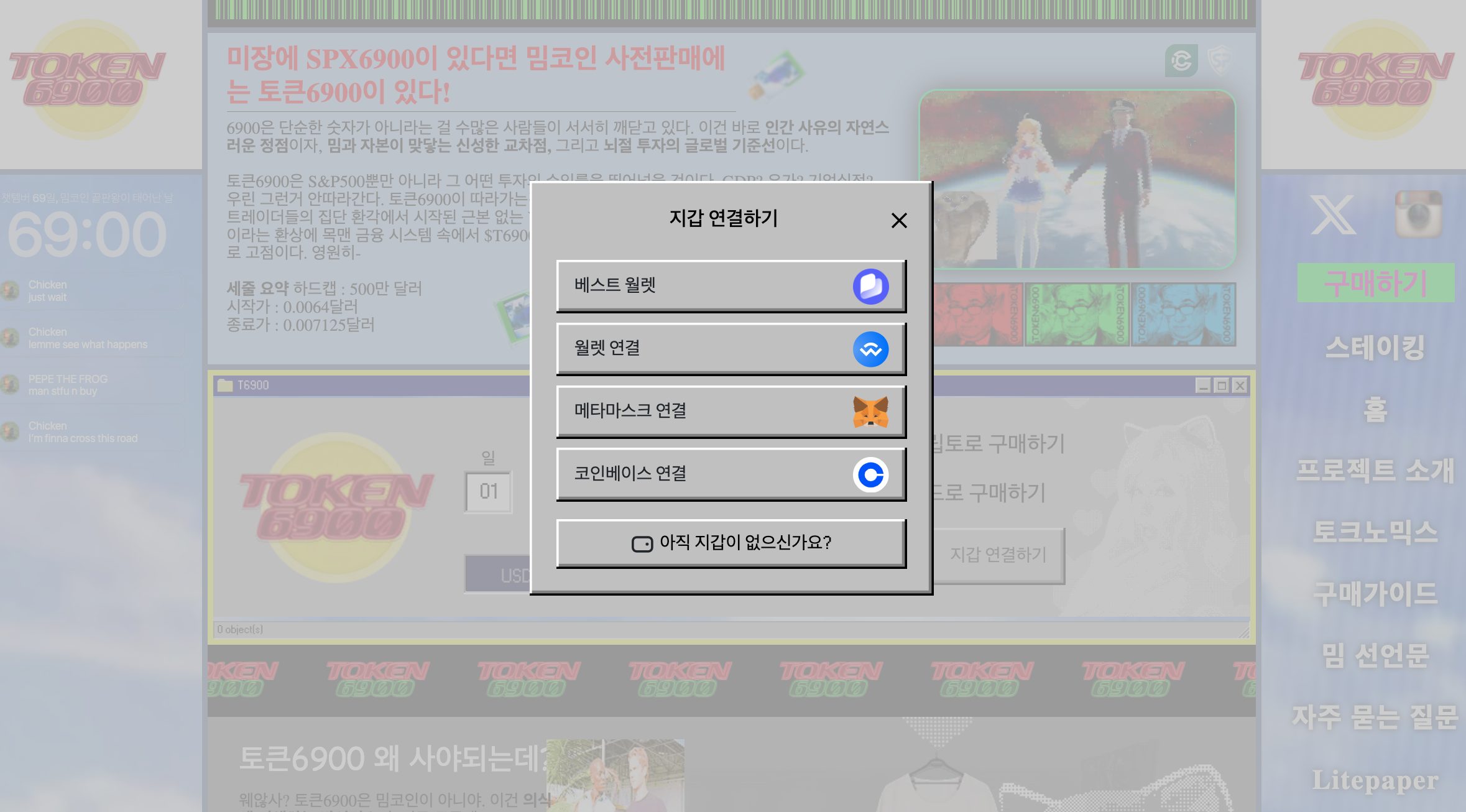지갑에 ETH 혹은 USDT를 채웠다면 이제 토큰6900 웹사이트에 방문합니다.
