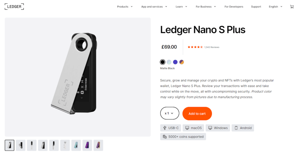 렛저 나노 S 플러스 지갑은 1) 5,500개 이상의 코인·토큰을 보관하고 2) 코인을 매수·스테이킹하고 3) 디앱을 액세스할 수 있는 업계 최고의 앱인 ‘렛저 라이브(Ledger Live)’를 제공하는 훌륭한 콜드월렛입니다.