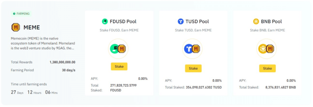 New #Binance Launchpool: $MEME@memecoin is the native ecosystem token of @Memeland, the independent Web3 venture studio by 9GAG.