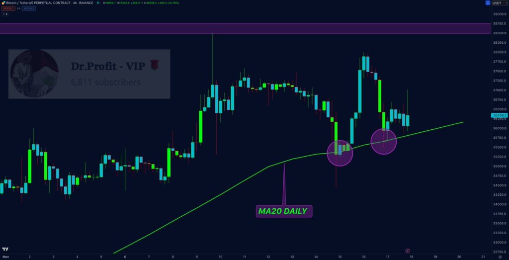 이 수준이 유지되는 한 BTC의 강세 시나리오는 여전히 유효하며, 이는 38,500 수준 근처에 유동성 풀이 형성되어 있다는 점을 고려할 때 단기적으로 38,000 가격선을 돌파할 수 있다. 실제로 비트코인은 계속해서 상향 저점을 형성하고 있으며, 이는 강세 랠리의 신호탄이 될 수 있다.