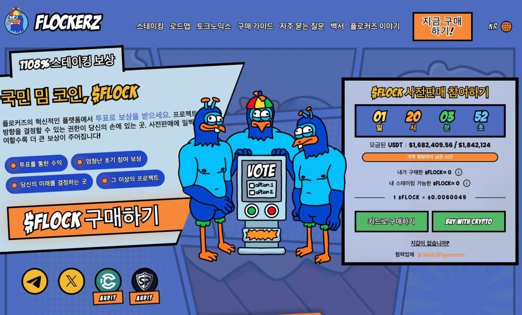 플로커즈(Flockerz, $FLOCK)가 사전 판매에서 160만 달러를 모금하며 꾸준히 관심 받고 있다. 현재 $FLOCK 토큰은 $0.0060049에 판매되고 있지만 2일 뒤 가격이 인상된다.