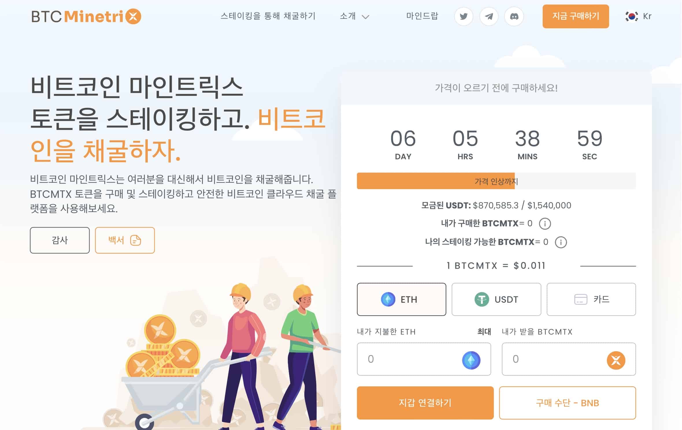 $BTCMTX 토큰을 구매하려면 ETH, UST, BNB 혹은 신용 카드가 필요하다. 바로 스테이킹해서 수익을 얻고 싶다면 ETH로 결제해야 한다.