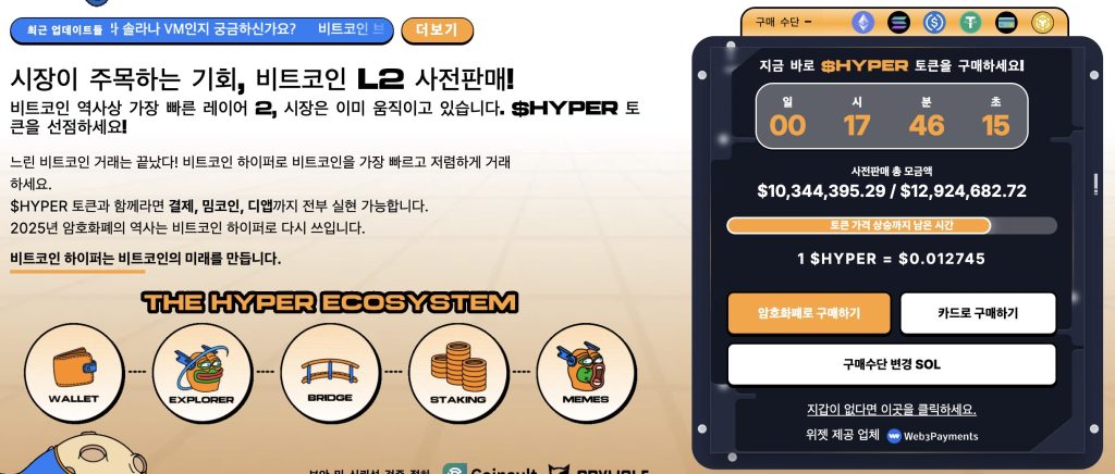 비트코인의 보안성과 솔라나의 속도를 겸비한 ‘비트코인 하이퍼(HYPER)’