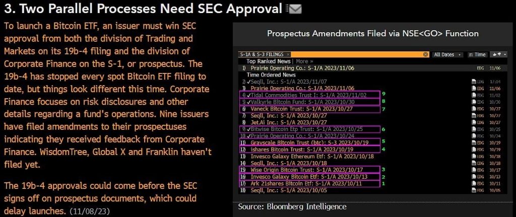 스콧 존슨은 만약 19b-4s가 승인된다면 S-1s는 형식적인 문제에 불과할 것으로 보고 있다. 다만 이는 비트코인 ETF 승인과 출시 사이에 2개월의 지연이 있을 수 있음을 의미하기도 한다.
