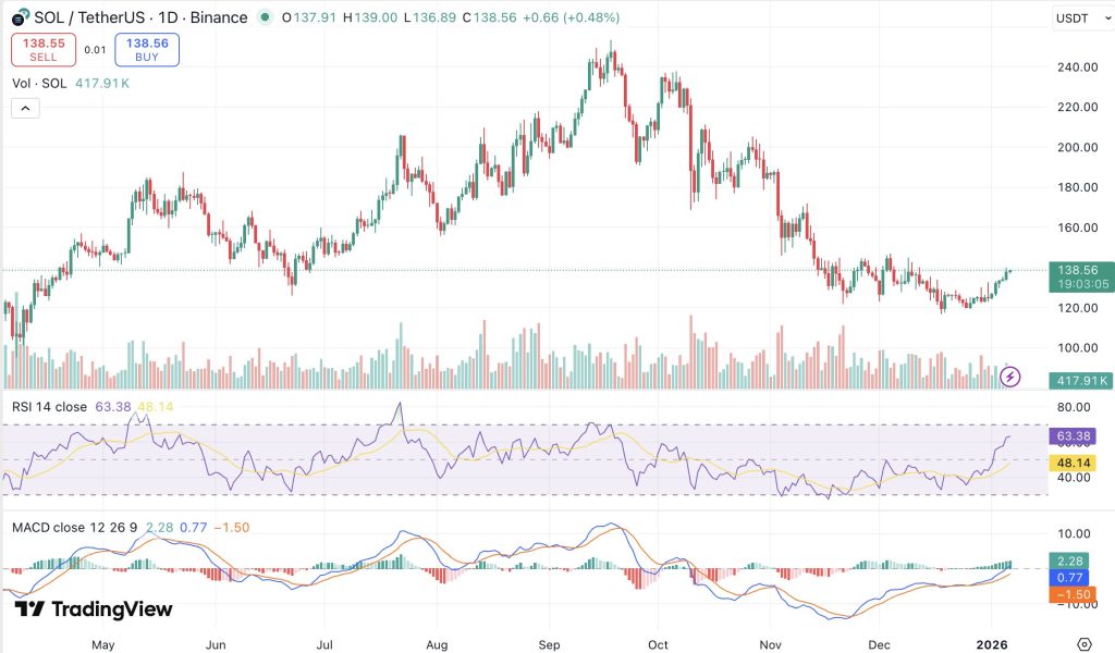 솔라나(SOL)은 2026년에도 가장 빠르게 성장하는 블록체인 생태계 중 하나이다. 솔라나 네트워크의 총 예치 금액(TVL)은 90억 달러에 가까우며 시가총액은 780억 달러를 넘었다. 솔라나 개발자 활동과 채택도 견고하다.