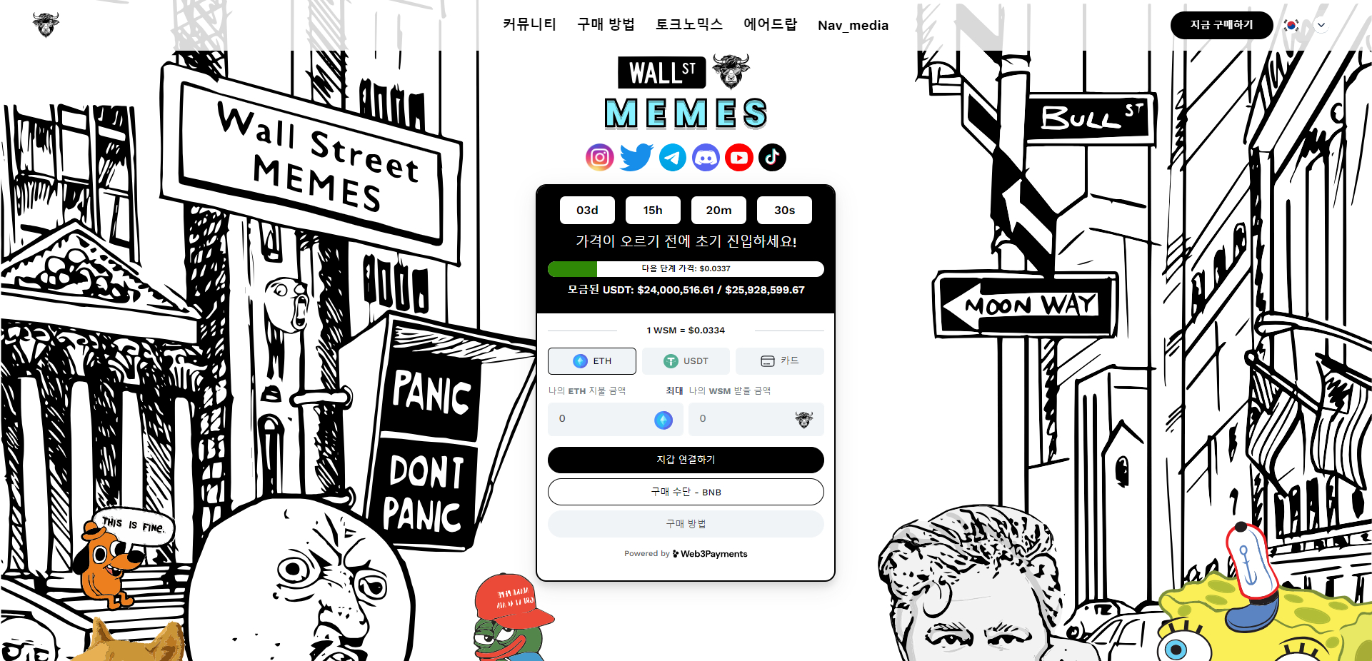 월 스트리트 밈즈는 현재까지 2,400만 달러 이상을 판매했다. 이 사전 판매는 약 3,000만 달러를 달성하면 종료될 예정이며, 이것은 대부분의 최근 밈코인보다 훨씬 큰 규모이다. 사전 판매는 현재 28단계가 진행 중이고, WSM 가격은 0.0334달러이다.