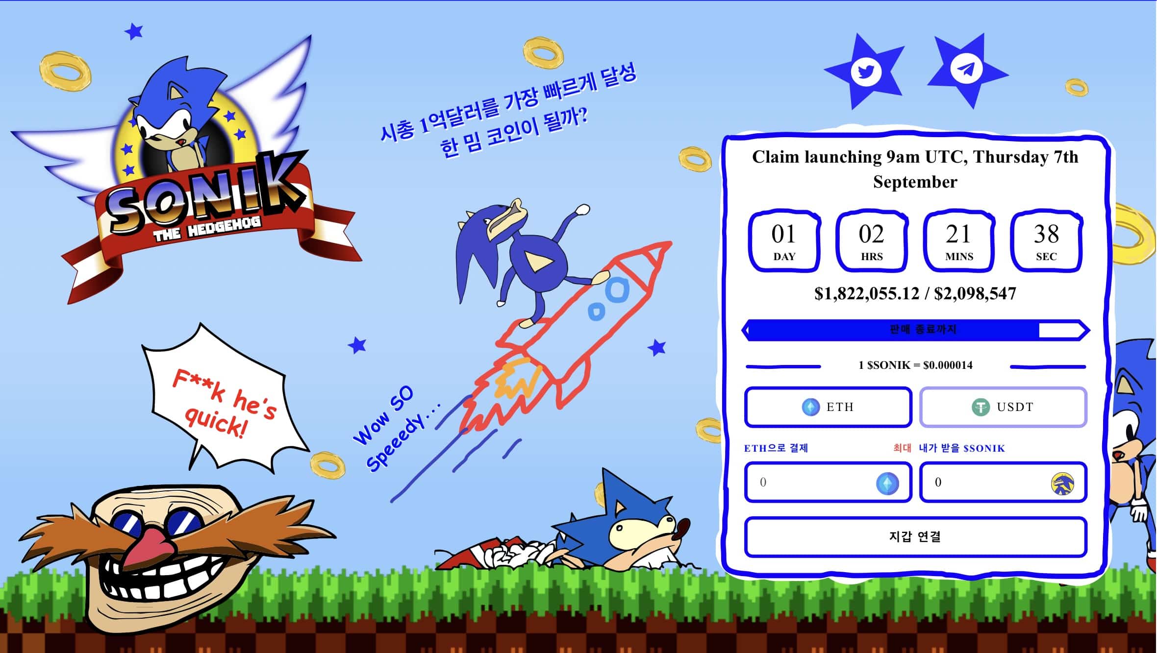 가장 최근에 기사 헤드라인을 장식하고 있는 밈코인 소닉 코인(Sonik Coin)이 9월 7일 오후 6시(한국 시각)에 유니스왑에 상장된다. 사전 판매 구매자는 같은 시각부터 사전 판매 토큰을 수령할 수 있다.