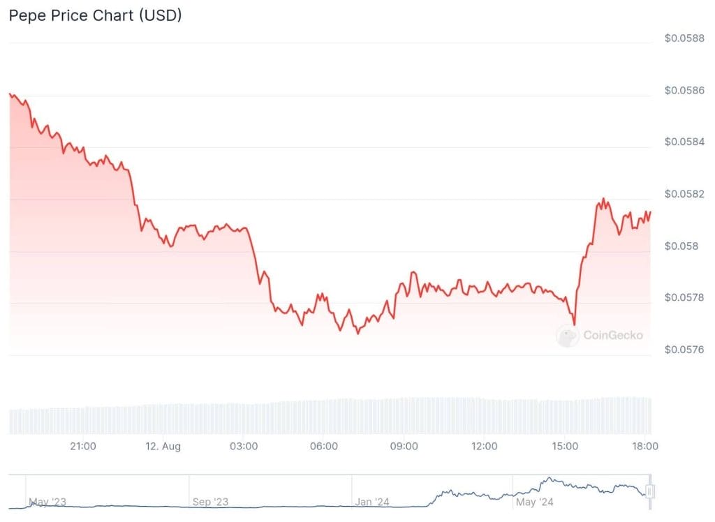 대형 밈 코인 도지코인(DOGE), 시바 이누(SHIB), 페페(PEPE)은 각각 5.1%, 4.4%, 5.4% 하락했으며 세계 밈 코인 시장은 9.2% 하락했다.