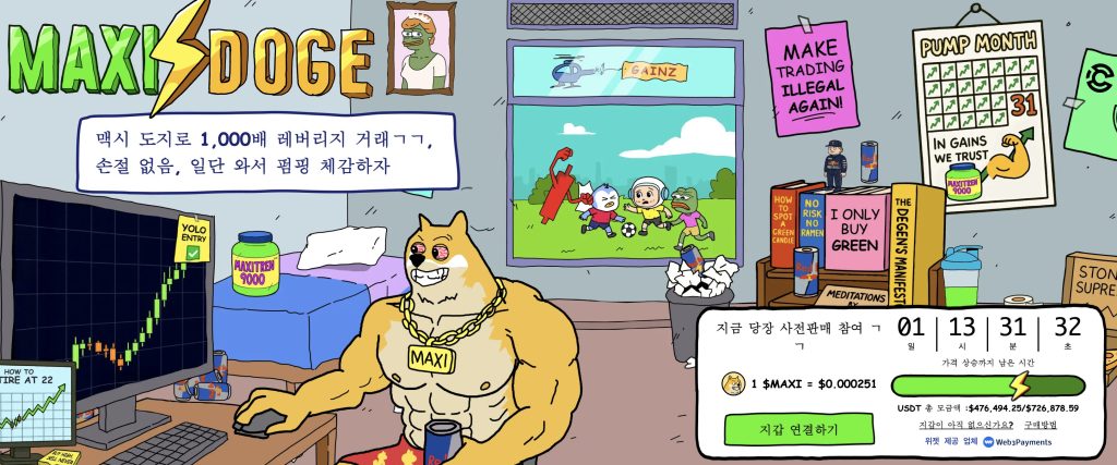 현재 트렌드인 ‘미션 코인’을 풍자하는 맥시 도지는 기능성이 전무한 순도 100% 밈코인임을 자랑한다.