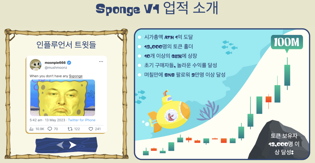 2023년 5월, SPONGE는 조기 후원자들에게 100배에 달하는 수익을 창출한 바 있으며 투자자들은 SPONGEV2가 이러한 수익을 모방, 또는 심지어 능가, 할 수 있기를 희망한다.