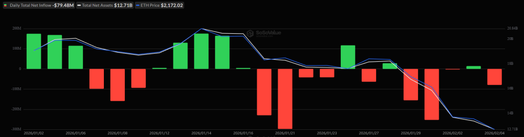 12개 ETF 중 6개에서 순유출이 발생했으며, 순유입을 기록한 곳은 없었다. 블랙록(BlackRock)은 2월 4일에 3억 7,344만 달러를 매도했다.