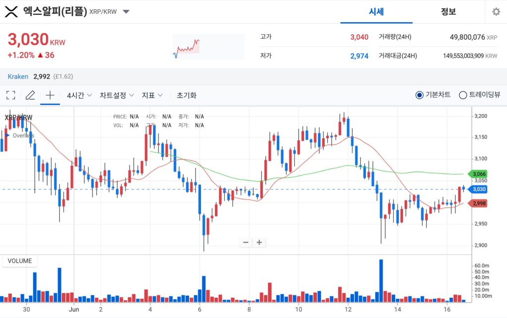 리플 코인 엑스알피(XRP)가 24시간 전 대비 2.05% 올라 $2.19에 거래되고 있다. 24시간 거래량은 20억 2,000만 달러로 같은 기간 동안 19% 증가했다. 국내 가상자산 시장에서도 엑스알피 코인이 소폭 회복했다고 확인할 수 있다. 업비트 기준 엑스알피 가격(XRP)은 3,030원으로 전일 대비 1.2% 올랐다.