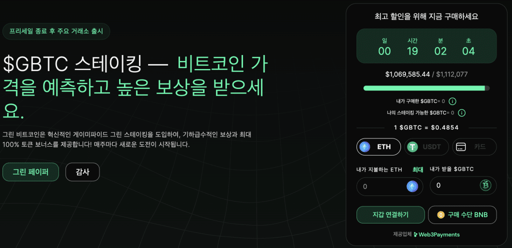 본 기사는 그린 비트코인 플랫폼의 핵심 기능인 BTC 가격을 예측하여 수익을 얻는 방법과GBTC 사전판매에 대해 살펴본다. 투자자들이 왜 GBTC 토큰이 10배 이상 성장할 수 있다고 예상하는지 알아보자.