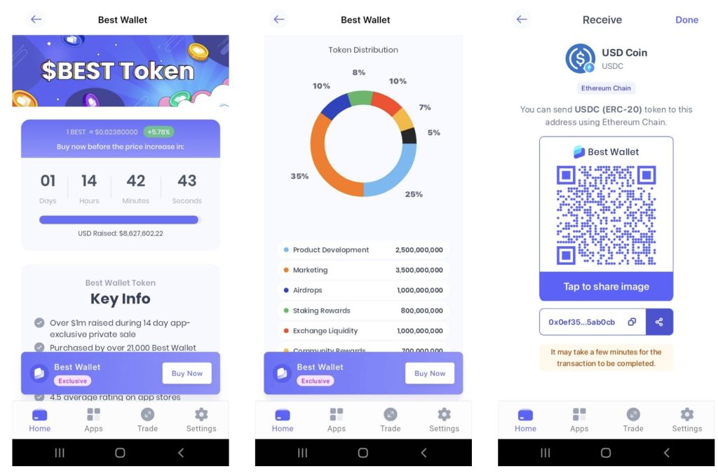 또는 베스트 월렛 앱 내에서 보유 중인 ETH, USDT 또는 은행 카드로 BEST를 구매할 수 있다. 베스트 월렛 앱은 구글 플레이와 애플 앱 스토어에서 다운로드할 수 있다.